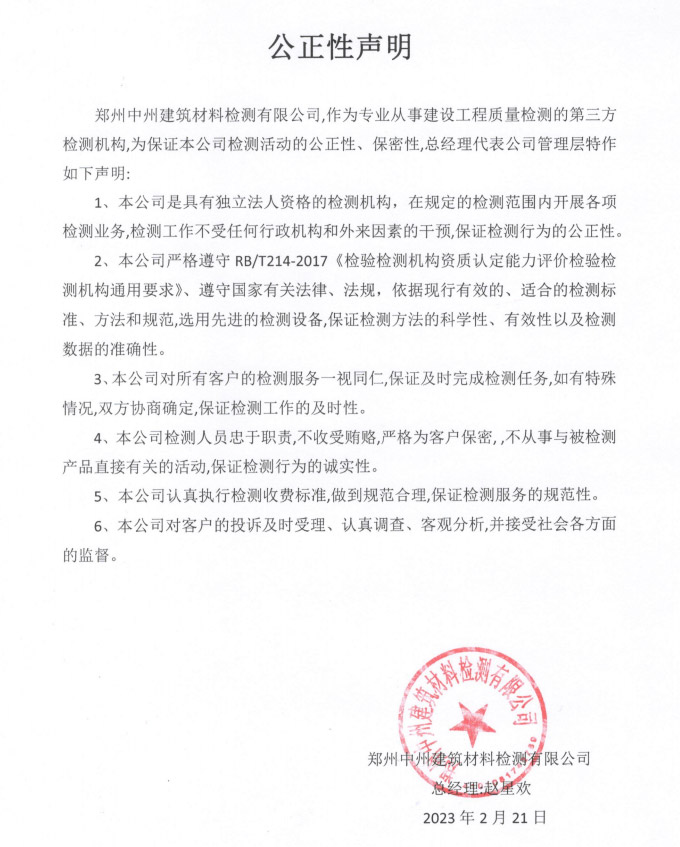 通過河南省質(zhì)量技術(shù)監(jiān)督局計量認證、河南省住房和城鄉(xiāng)建設(shè)廳批準(zhǔn),具有獨立法人資格的第三方檢測機構(gòu)。